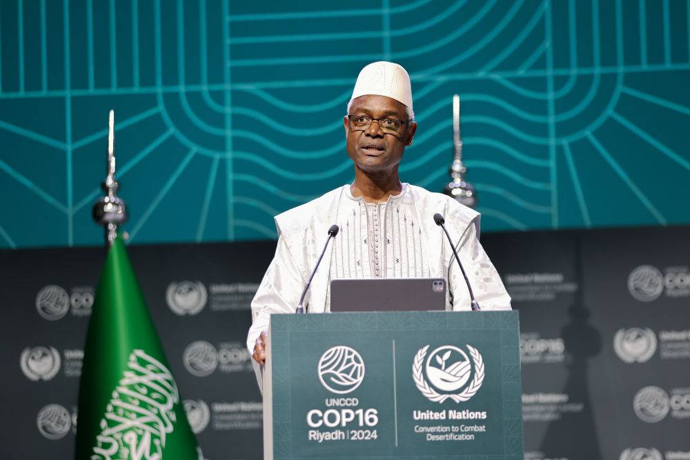 12月14日,在沙特阿拉伯王人门利雅得,《联接国防治凄冷化协议》通告处实行通告易卜拉欣·蒂奥在《联接国防治凄冷化协议》第十六次缔约方大会结果会议上谈话。新华社发